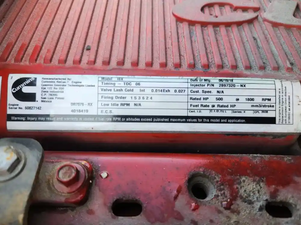 (Used) 2014 Cummins ISX, ENGINE ASSEMBLY- Remanufactured by Cummins, Family Number: ECEXH0912XAU, Displacement: 15L, Horsepower: 500, ARR/CPL: 3938, Serial Number: 60827142, Part Number: 4018419, ,