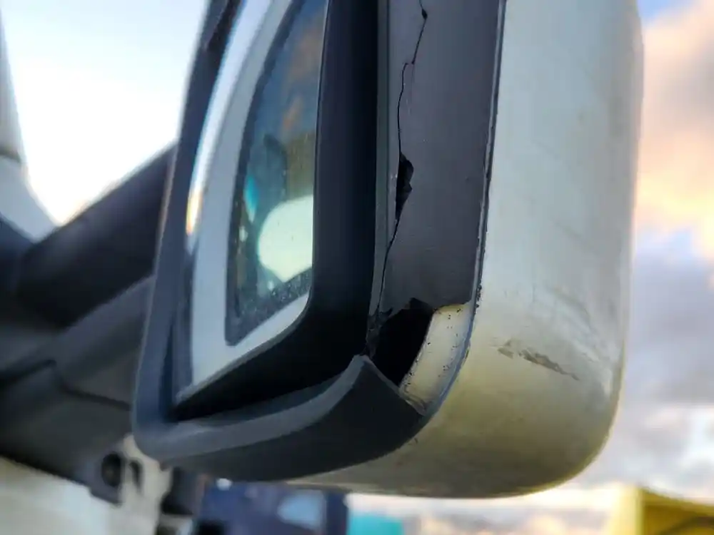 (Used) 2015 Kenworth T680, SIDE VIEW MIRROR- Side: Passenger Right Side, Color: White, Type: Power, Mounts: Cab, Minor Damage!! Reference images for condition,