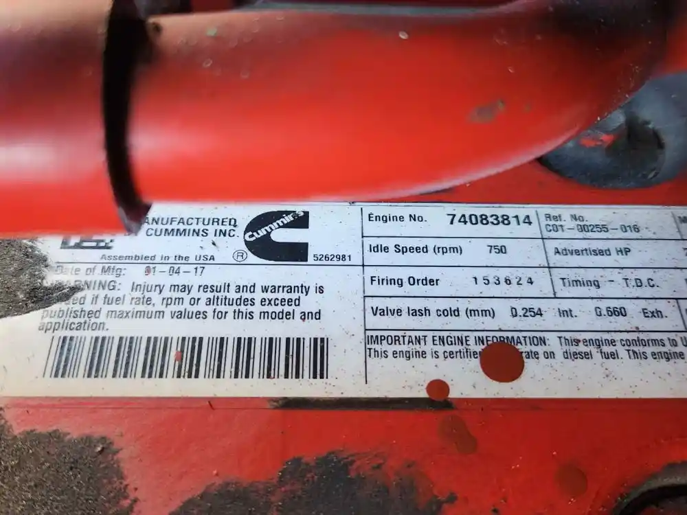 (Used) 2017 Cummins B6.7, ENGINE ASSEMBLY- Family Number: HCEXH0408BAT, Displacement: 6.7L, Horsepower: 240, CPL: 4569, Part Number: C01-00255-016, Serial Number: 74083814, E.C.S.: EGR, PTOX, SCRC, Mileage: 1742850, ,