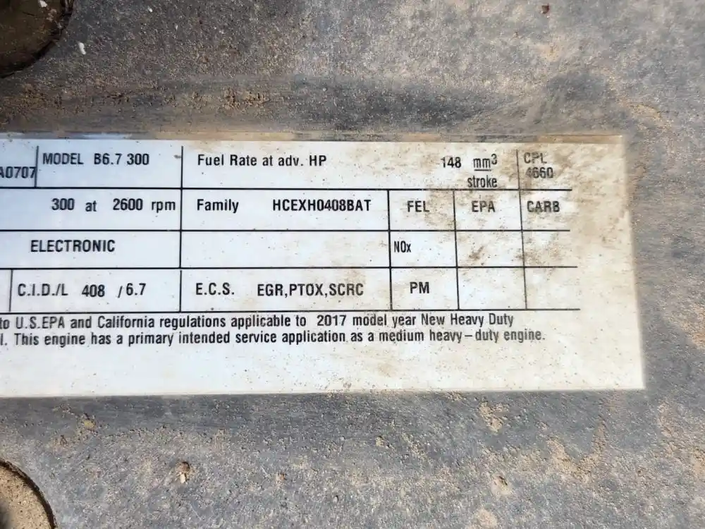 (Used) 2017 PACCAR PX-7, ENGINE ASSEMBLY- Family Number: HCEXH0408BAT, Displacement: 6.7L, Horsepower: 300, Serial Number: 74100636, ECS: EGR, PTOX, SCRC,