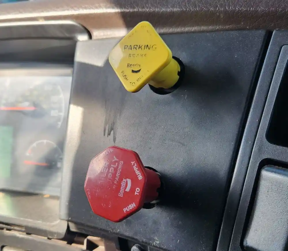 (Used) 2017 Volvo VNL, MISCELLANEOUS DASH SWITCHES- Controls: Parking Brake, Trailer Air Supply, Material: Plastic, Reference images for condition,