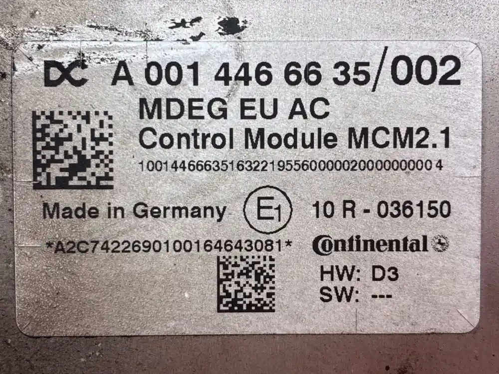 (Used) 2018 Detroit DD15, ENGINE ECM- Part Number: A 001 446 66 35/ 002, Serial Number: A0434480235 003, A 002 446 09 35 / 002, 100144666351632219556000002000000000 4, A2C7422690100164643081, E1 10 R 036150, HW: D4, SW: ---, 1 Rectangular Plug with 120 Pins, 1 Rectangular Plug with 21 Pins, Reference images for condition. ,