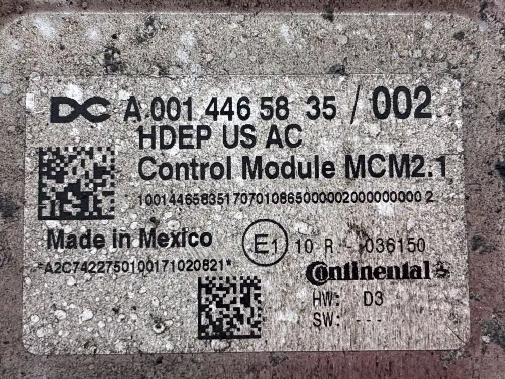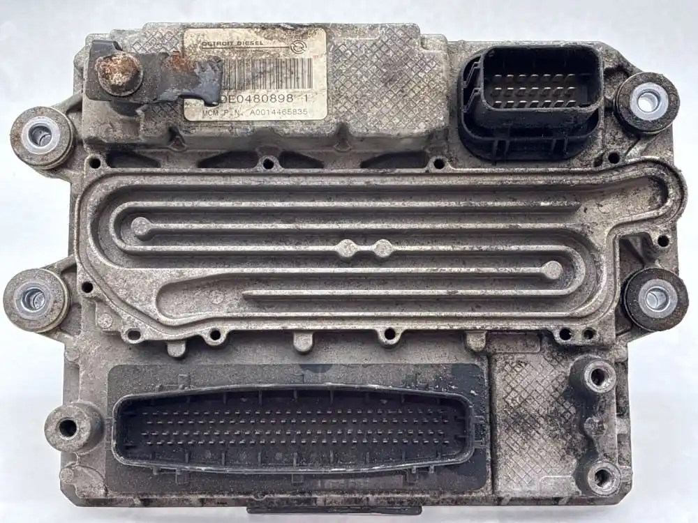 (Used) 2018 Detroit DD15, ENGINE ECM- Part Number: A024460935, Serial Number: HDE0480898, A 001 446 58 35 / 002, 100144658351707010865000002000000000 2, A2C7422750100171020821, E1 10 R 036150, HW: D3, SW: ---, 1 Rectangular Plug with 120 Pins, 1 Rectangular Plug with 21 Pins, Reference images for condition. ,