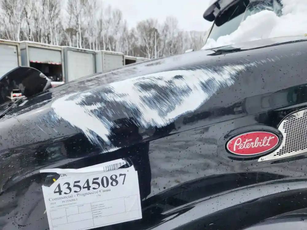 (Used) 2018 Peterbilt 579, HOOD ASSEMBLY- Length: 53" From Cowl to grille, Color: Black, Material: Fiberglass, It's Broken and Scratched, Damage Reference images for condition,