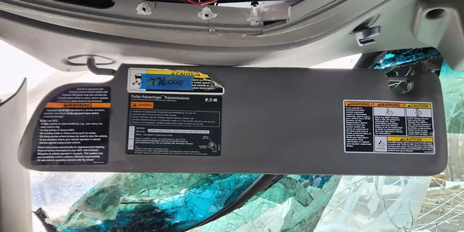 (Used) 2018 Peterbilt 579, SUN VISOR- Side: Driver Left Side, Color: Grey, Material: Vinyl, Type: Adjustable, Minor Damage Reference images for condition,