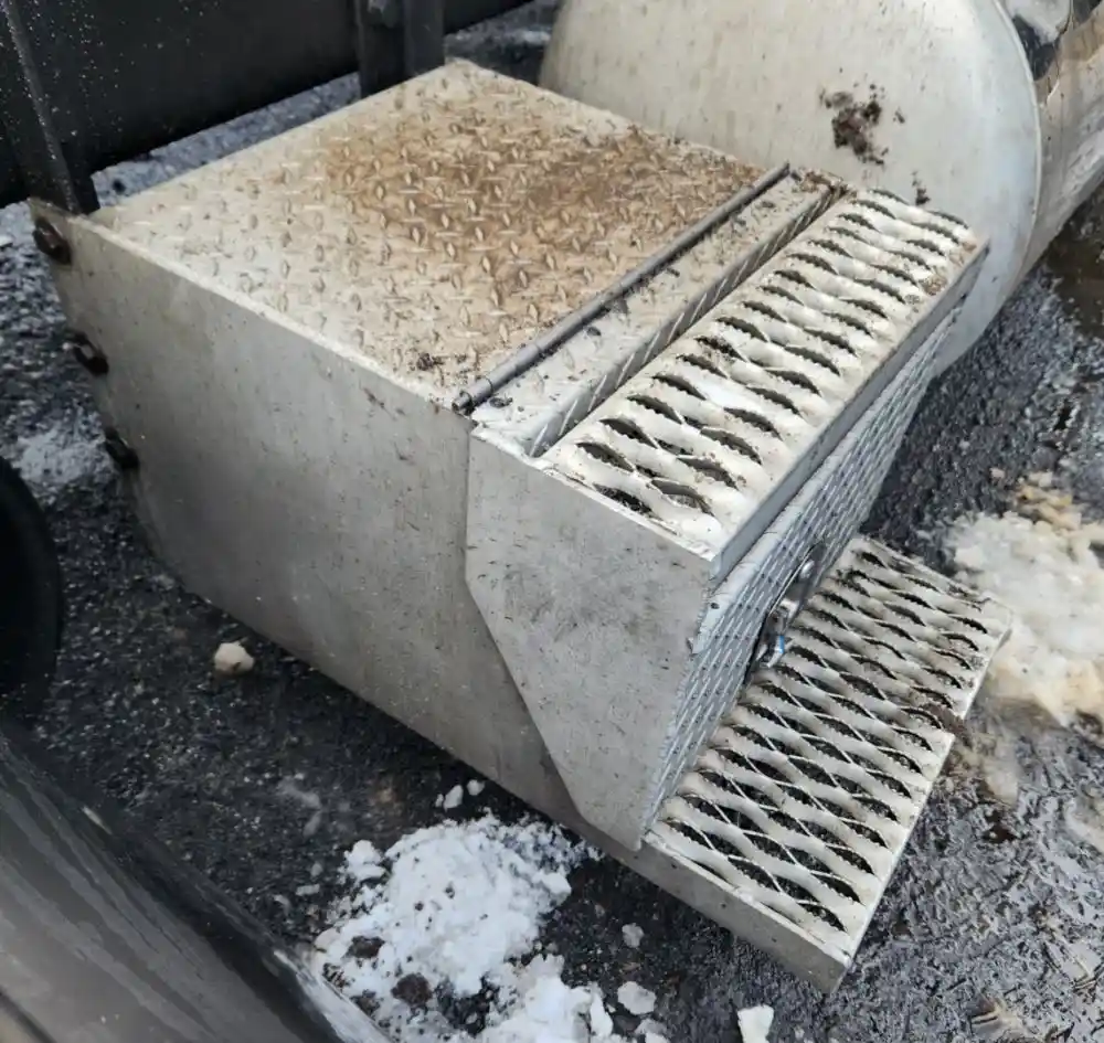 (Used) 2018 Peterbilt 579, TOOL BOX- Side: Passenger Right Side, Color: Silver, Material: Aluminum, Dimensions: L=18 ¾", H=16", W=30", Reference images for condition,