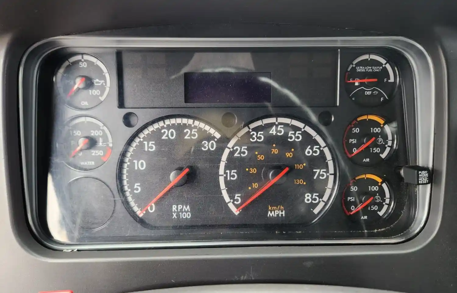 (Used) 2019 Freightliner M2 106, INSTRUMENT CLUSTER- Gauges: Engine Oil Pressure, Water Temperature, RPM, MPH, Def Level, Fuel Level, Brake Air Pressure (P), Brake Air Pressure (S), Material: Plastic, Reference images for condition,