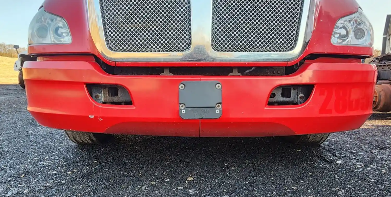 (Used) 2019 Kenworth T680, BUMPER- Color: Red, Material: Plastic, Dimensions: L=94.5", H=18", Has Some scratches!! Reference images for condition,