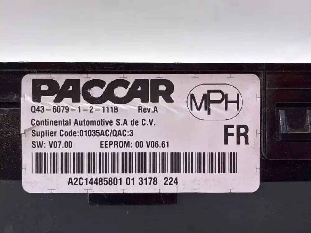 (Used) 2019 Peterbilt 579, Cab & Cab Parts INSTRUMENT CLUSTER- Part Number: Q43-6079-1-2-111B, Serial Number: A2C1448501 01 3178 224, Suplier Code: 01035ac/QAC: 3, SW: V07.00, EEPROM: 00 V06.61, Gauges: Coolant, Diesel Exhaust Fluid, Fuel Level, RPM, MPH, Oil Pressure, PSI(1), PSI(2),