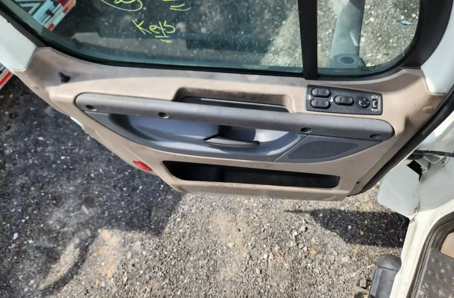(Used) 2020 Freightliner Cascadia 125, INTERIOR DOOR PANEL- Side: Driver Left Side, Color: Tan with Grey, Type: Power, Material: Plastic, Reference images for condition,