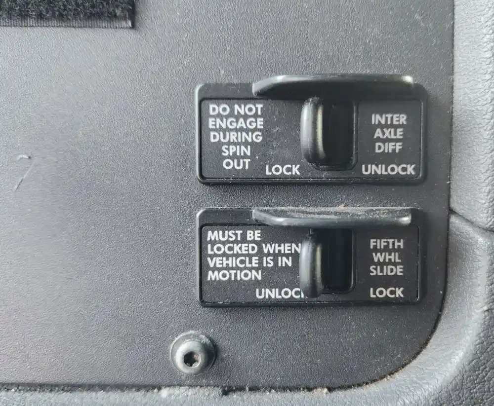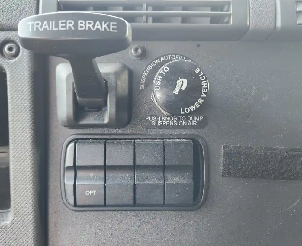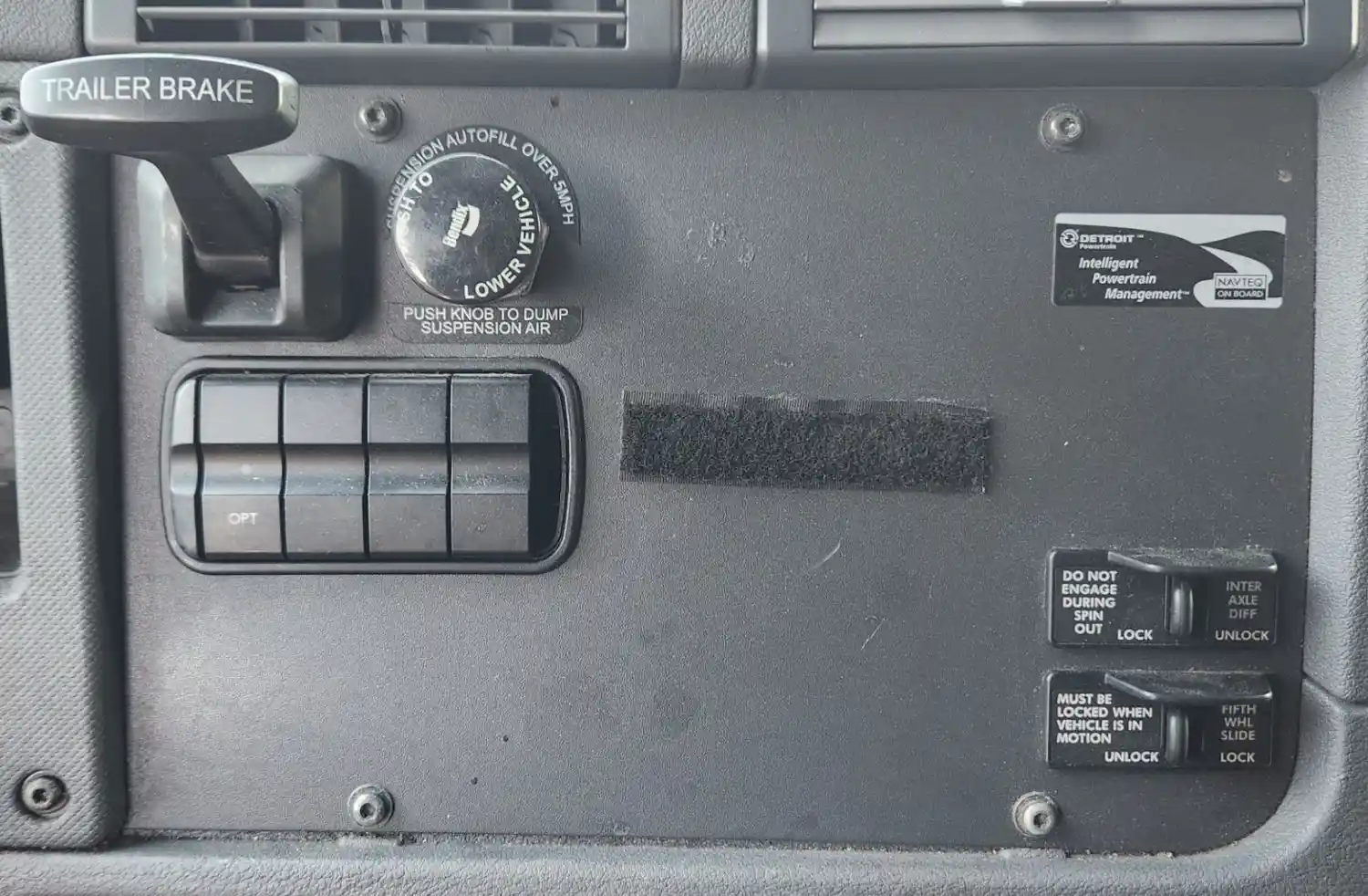 (Used) 2020 Freightliner Cascadia 125, MISCELLANEOUS DASH SWITCHES- Controls: Trailer Brake, Lower Vehicle, OPT, Inter Axle Diff, Fifth Wheel Slide, Material: Aluminum with Plastic, Reference images for condition,