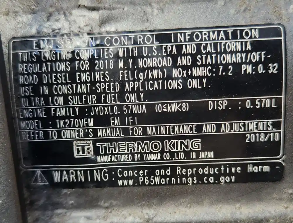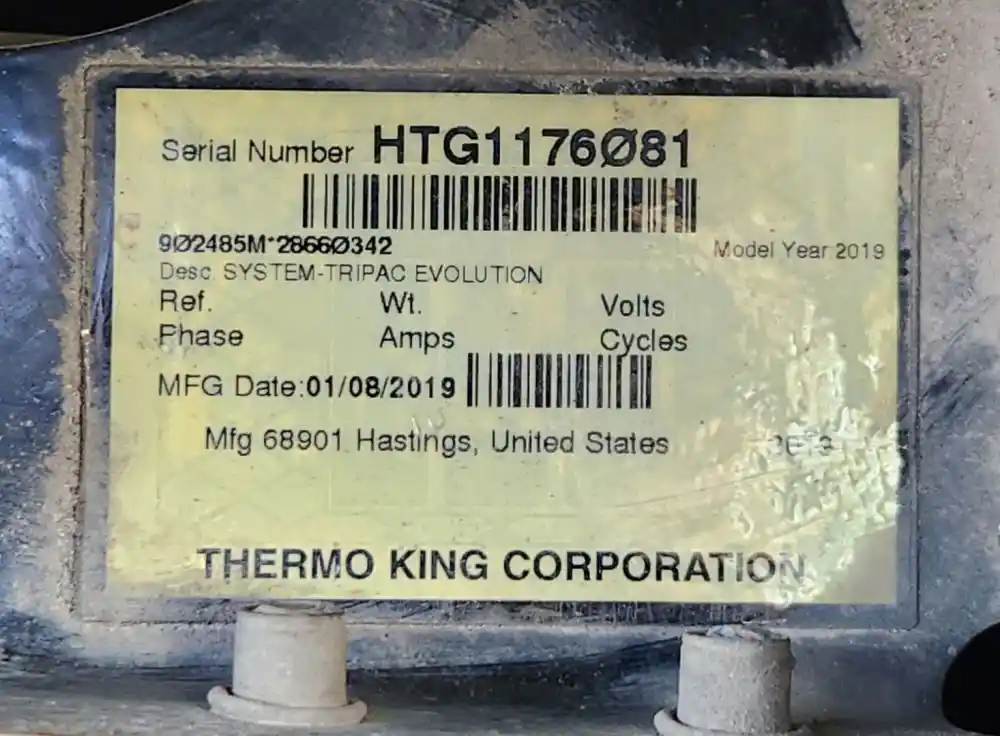 (Used) 2020 Freightliner Cascadia 125, POWER UNIT- Part Number: 902485M*28660342, Serial Number: HTG1176081, Make: Thermo King, Model: TRIPAC EVOLUTION (DIESEL), ENGINE INFORMATION- Serial Number: GA7058, Make: Thermo King, Model: TK270VFM, Engine Family: JYDXL0.57NUA, Engine Displacement: 0.570L, E.C.S: EM, IFI, Reference images for condition,
