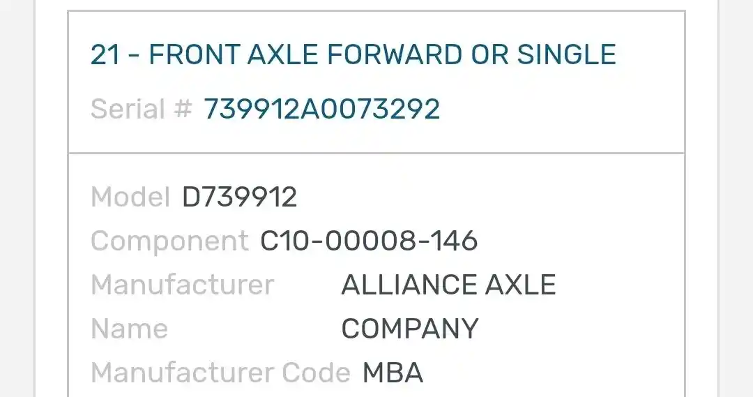 (Used) 2020 Freightliner Cascadia 126, FRONT SPINDLE/KNUCKLE- Part Number: C10-00008-146, Serial Number: 739912A0073292, Side: Driver Left Side, Make: Detroit, Model: DA-F-13.3-3, Capacity: 13,300 lbs, Hub Bolts: 10, Brake Type: Disc, Reference images for condition,