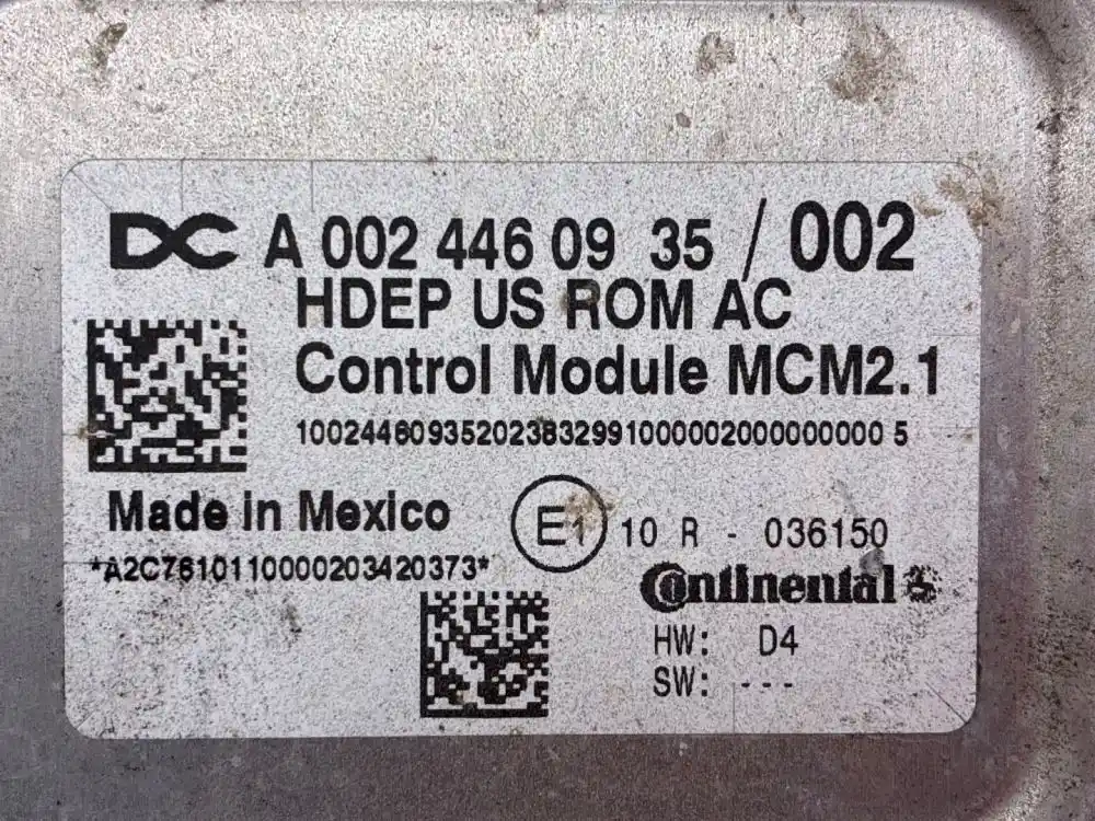 (Used) 2021 Detroit DD15, ENGINE ECM- Part Number: A024460935, Serial Number: HDE0799763 31, A 002 446 09 35 / 002, 10024460935935202383299000002000000000 8, A2C7610110000203420373, E1 10 R 036150, HW: D4, SW: ---, 1 Rectangular Plug with 120 Pins, 1 Rectangular Plug with 21 Pins, Reference images for condition. ,