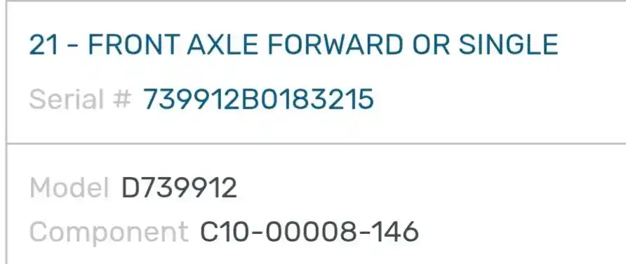 (Used) 2021 Freightliner Cascadia 126, FRONT SPINDLE/KNUCKLE- Part Number: C10-00008-146, Serial Number: 739912B0183215, Side: Passenger Right Side, Make: Detroit, Model: F13.3-3, Capacity: 13,300 Lbs, Hub Bolts: 10, Brake Type: Drum, Reference images for condition,
