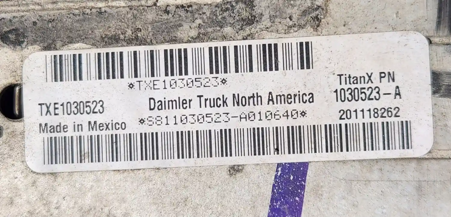 (Used) 2021 Freightliner Cascadia 126, INTERCOOLER- Price is for Intercooler ONLY- Picture is for display only, Part Number: TXE1030523, Engine: Detroit DD15, Dimensions: L=37", H=26 ¾", Material: Aluminum, Less Radiator and Condenser Sold Separately, Reference images for condition,