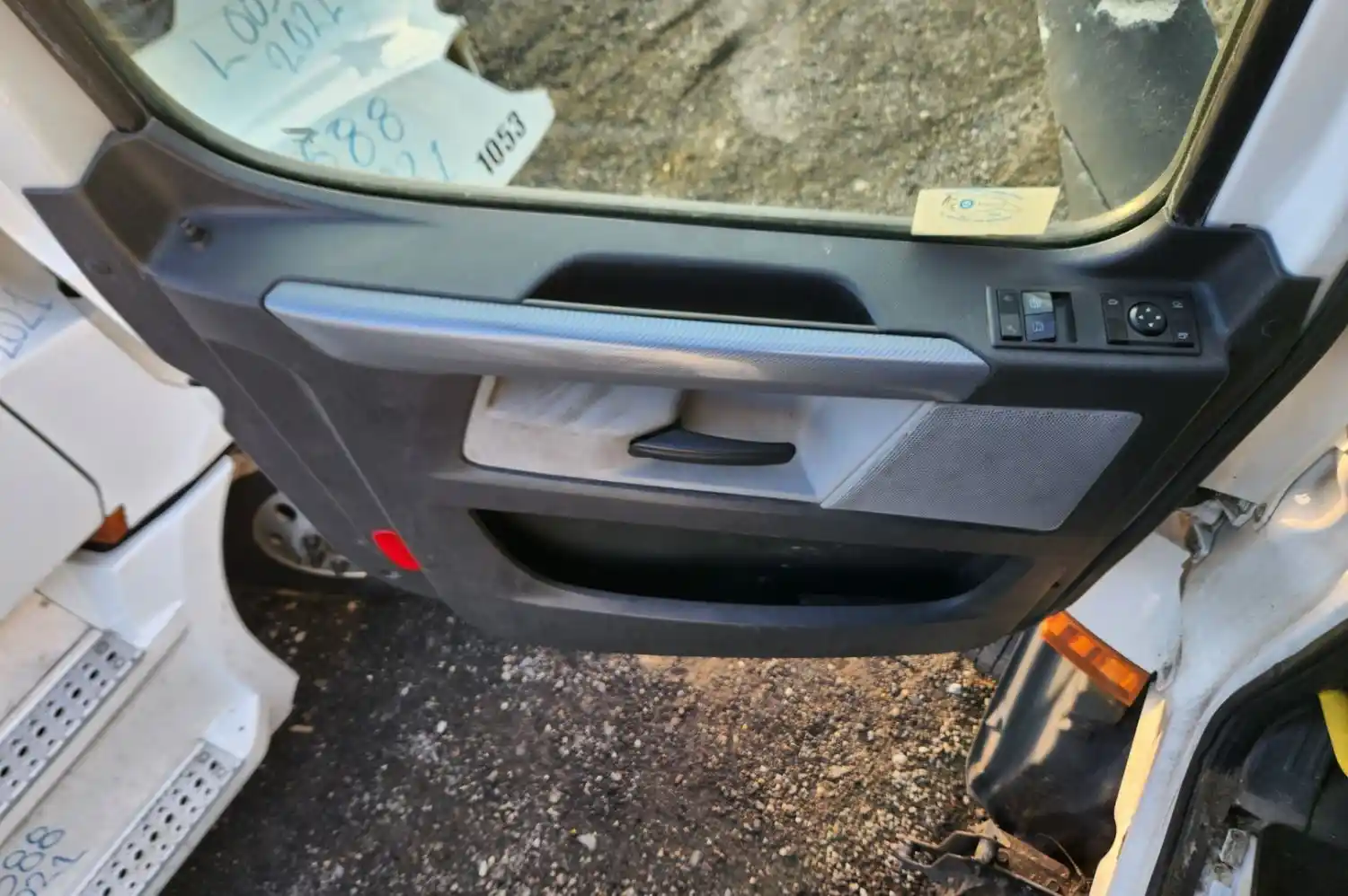 (Used) 2021 Freightliner Cascadia 126, INTERIOR DOOR PANEL- Side: Driver Left Side, Color: Black with Grey, Type: Power, Material: Plastic, Reference images for condition,