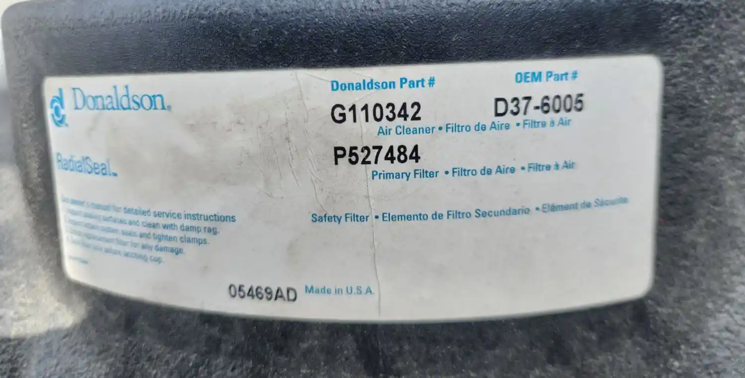 (Used) 2021 Kenworth T370, AIR CLEANER- Part Number: G110342, Side: Passenger Right Side, Color: Black, Material: Plastic, Engine: PACCAR PX-9, Dimensions: L=13", D=9", Reference images for condition,