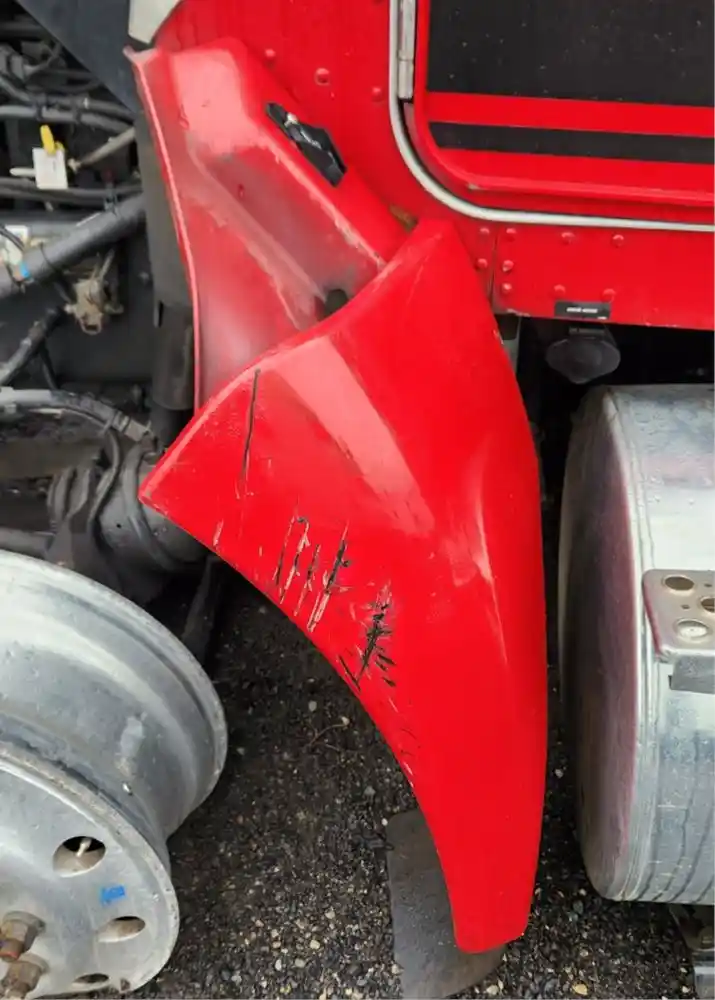 (Used) 2021 Kenworth T370, FENDER EXTENSION- Side: Driver Left Side, Color: Red, Material: Plastic, Damage Reference images for condition,