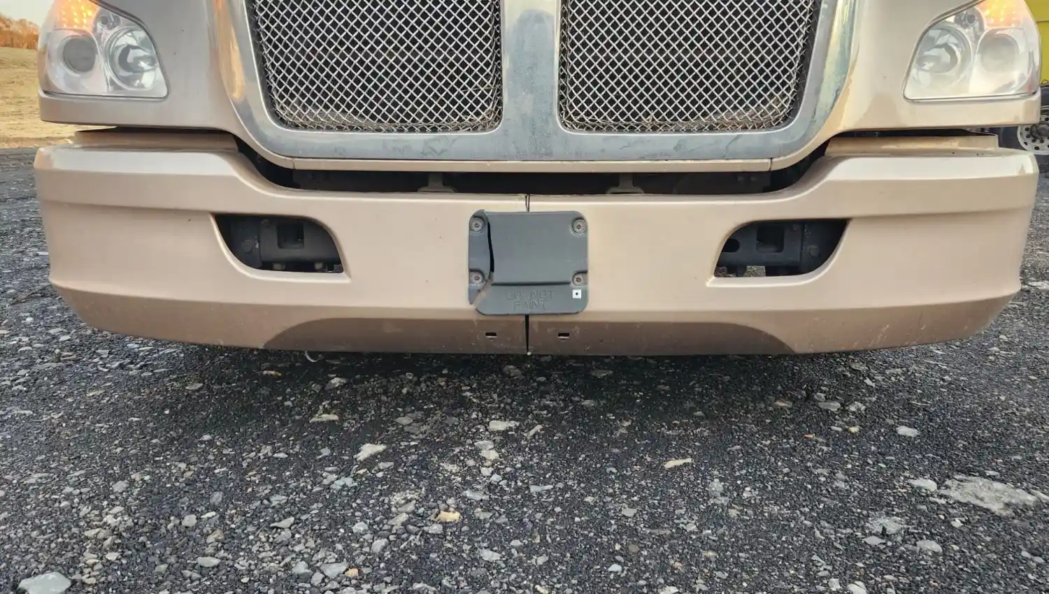 (Used) 2021 Kenworth T680, BUMPER- Color: Beige, Material: Plastic, Dimensions: L=94.5", H=18", It has damage in the center of the bumper!! Reference images for condition,