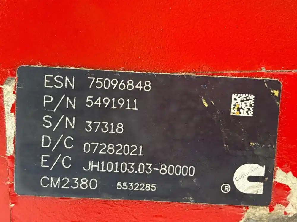 (Used) 2022 Cummins ISX12N, ENGINE ECM- Part Number: 5491911, Serial Number: 75096848, ESN 750968, P/N 5491911, D/C: 07282021, E/C JH10103.03-800000, CM2380, Engine Information- Family Number: KCEXH0729XBC, Displacement: 11.9L, 2 Rectangular Plug with 60 Pins each, 1 Rectangular Plug with 4 Pins, Reference images for condition,