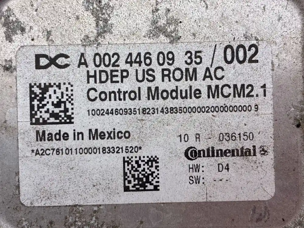 (Used) 2024 Cummins X12, ENGINE ECM- Part Number: A024460935, Serial Number: HDE0617736 46, A 002 446 09 35 / 002, 100244609351823143835000002000000000 9, A2C7610110000183321520, 10 R -036150, HW: D4, SW: ---, 1 Rectangular Plug with 120 Pins, 1 Rectangular Plug with 21 Pins, Reference images for condition. ,