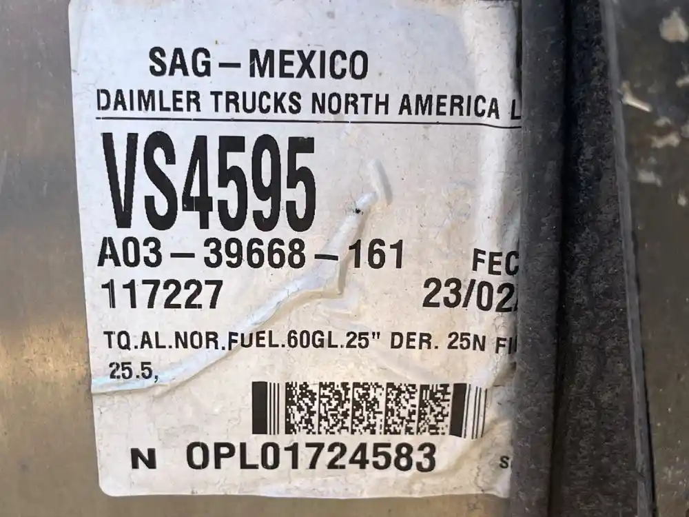 (Used) 2025 Freightliner Cascadia 126, FUEL TANK- Part Number: A03-39668–161, Side: Passenger Right Side, Material: Aluminum, Capacity: 60 Gallons, Shape: Round, Dimension: L=29”, D=25”, Reference images for condition, ,