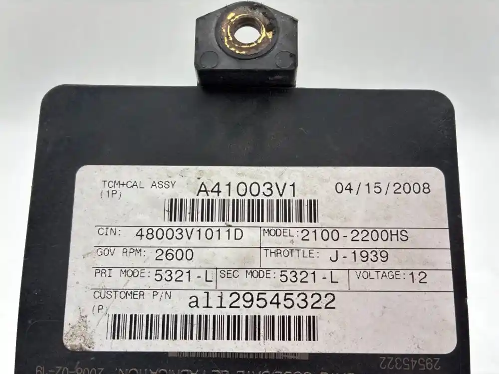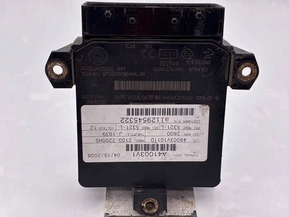 (Used) Allison 2100-2200HS , TRANSMISSION ECM- Part Number: 29545322, Serial Number: BK5322N18049ALXH, A41003V1, CIN: 48003V1011D, GOV RPM: 2600, THROTTLE: J--1939, PRI MODE: 5321-L, SEC MODE: 5321-L, CUSTOMER P/N ali29545322, 12V, E11, 022849, 10 R 022849, Supplier Number: ATA4101, MODEL: A41, Plug Pins: 80 Pins Plug Rectangular, Reference images for condition. ,