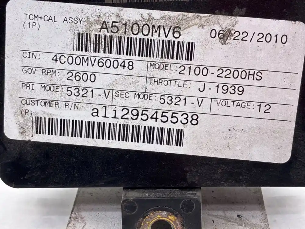 (Used) Allison 2100-2200HS, Transmission Parts TRANSMISSION ECM- Part Number: 29545536, Serial Number: BK5536N101300168, A5100QQ4, CIN: 4C00QQ40022, GOV RPM: 2600, THROTTLE: J-1939, PRI MODE: 5321-V, SEC MODE: 5321-V, 12 Volts, Customer P/N: ali29545538, E11, 032849, 10R022849, Supplier Number: ATA5101, MODEL: A51, Plug Pins: 80 Pins Plug Rectangular, Reference images for condition. ,