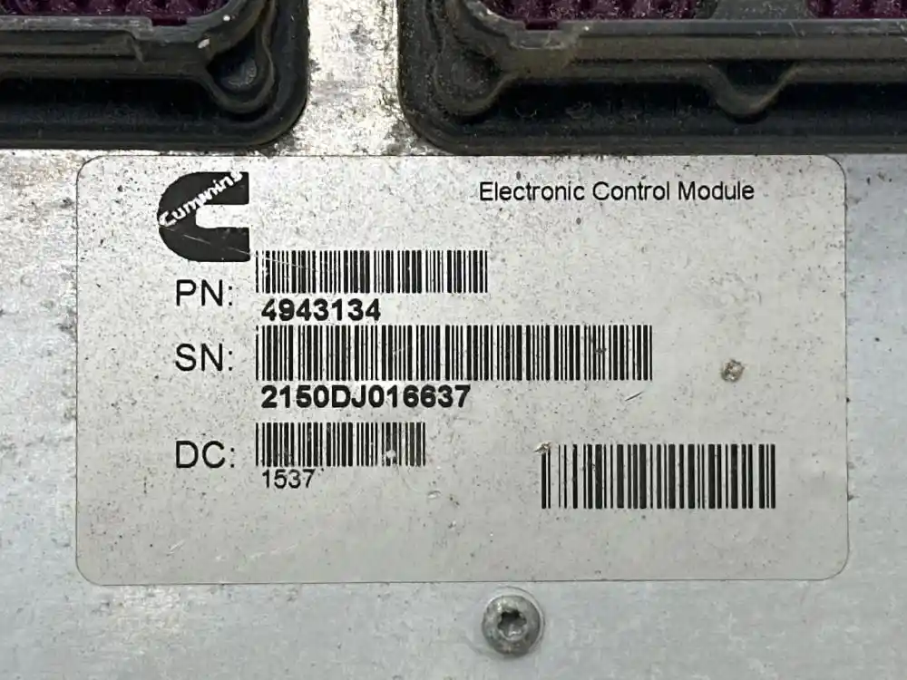 (Used) Cummins 2011 ISB175, ENGINE ECM- Part Number: 4943134, Serial Number: 2150DJ016637, DC: 1637 P4943134, 2150DJ016637, T2215, 2 Rectangular Plug with 60 Pins each, 1 Rectangular Plug with 4 Pins, Reference images for condition,