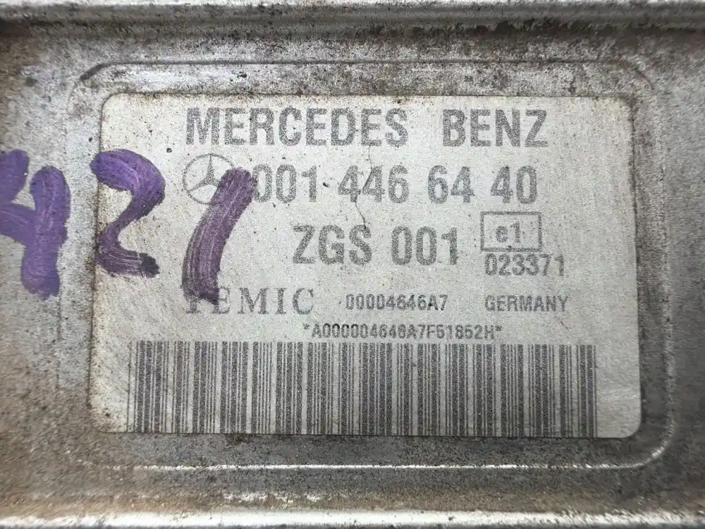 (Used) Mercedes OM460LA ENGINE ECM - Part Number: 001-446-64-40, Serial Number: A000004646A7F51852H, E1 023371, ZGS 001 Temic: 00004647A7, No. Calibration ZGS: A 460 447 54 40 001, No. of Certification: 460LA_04B_350/1350, Ident. Unit Serial Number: 460936-0-82502, Unit Code 1000 1000 1000 0970 00447 01120, 2 PLUGS 70 PINS IN TOTAL, 1: 54 PINS, 2: 16 PINS,