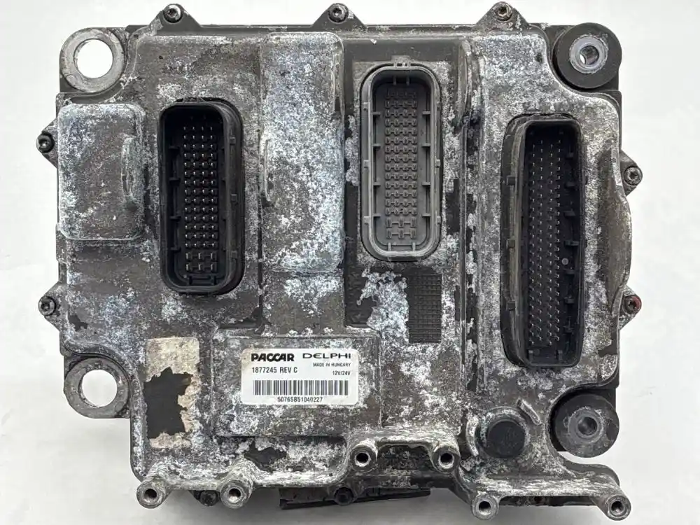 (Used) Paccar, ENGINE ECM- Paccar 1833060, Paccar 1877245, Paccar 1889041, Paccar 2013285, Paccar 2109555, Paccar 2298831, 2010-2014 Paccar MX13, Part Number: 1877245, Serial Number: 5076SB51040227, 12V/24V, 3 Rectangular plugs 216 pins, 1: 62 pins, 2: 62 pins, 3: 92 pins, (broken plastic rim),